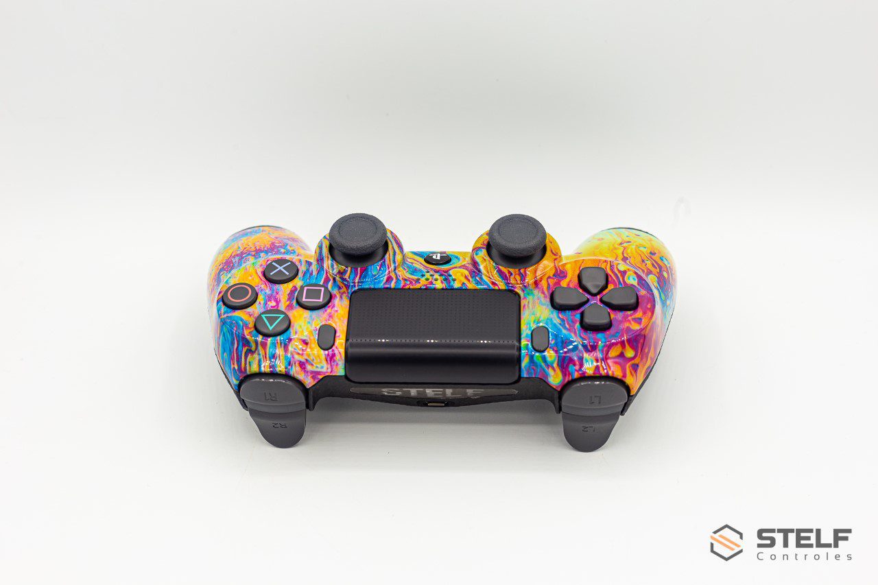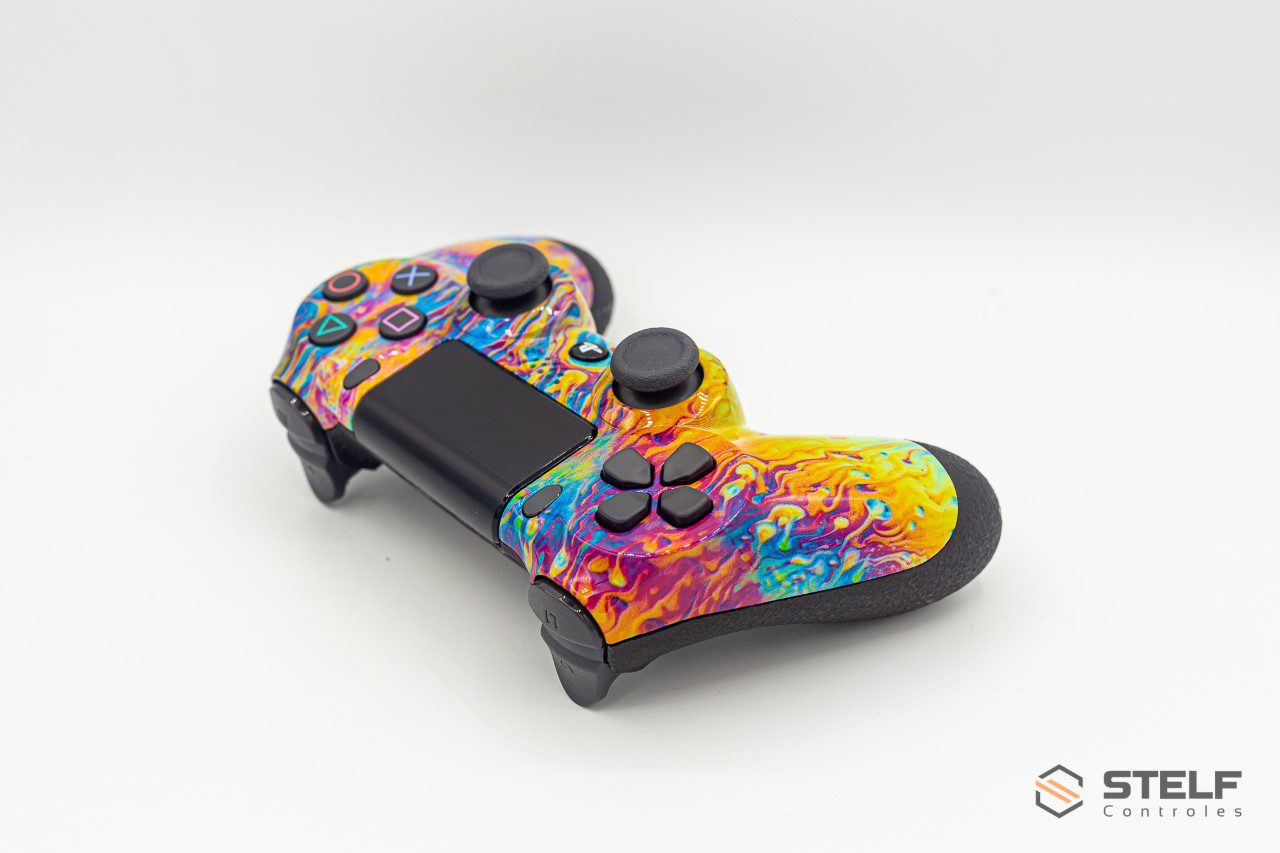 É importante ressaltar que todos os controles do PlayStation 4, incluindo aqueles que passam pelo processo de customização com pintura personalizada pela Stelf, são controles originais da Sony. A Stelf trabalha exclusivamente com controles genuínos e mantém a integridade das peças originais durante o processo de customização.   CONTROLE PRECISO: O toque, formato e a sensibilidade dos controles analógicos e botões com gatilho do DualShock 4 oferecem aos jogadores conforto e controle absolutos em todos os jogos para PlayStation 4. Os analógicos proporcionam movimentos suaves e precisos, permitindo uma jogabilidade mais imersiva e responsiva. Os botões com gatilho sensíveis à pressão oferecem uma experiência tátil diferenciada, permitindo um controle mais refinado em ações como atirar um arco e flecha ou acelerar um veículo.   COMPARTILHAMENTO EM SUAS MÃOS: O botão SHARE facilita o compartilhamento dos seus melhores momentos nos jogos. Com um simples toque do botão, é possível fazer upload de vídeos de gameplay e capturas de tela diretamente do seu sistema PlayStation 4. Além disso, você pode transmitir seu gameplay ao vivo para plataformas de streaming, compartilhando suas aventuras em tempo real com amigos e seguidores, tudo isso sem afetar o andamento do jogo.   RECURSOS INOVADORES: O controle do PlayStation 4 possui recursos revolucionários que elevam a experiência de jogo. O touchpad localizado no centro oferece uma superfície sensível ao toque, proporcionando novas formas de interação nos jogos. A barra de luz na parte frontal do controle fornece informações visuais adicionais durante o jogo, como indicadores de saúde do personagem ou mudanças de cor relacionadas aos eventos do jogo. Além disso, o controle possui um alto-falante integrado, que reproduz efeitos sonoros e áudio do jogo, aumentando a imersão sonora. Para aqueles que preferem jogar com mais privacidade, o controle também possui um conector de áudio de 3,5 mm, permitindo que você conecte seus fones de ouvido e desfrute de áudio pessoal durante o jogo.   RECARGA EFICIENTE: É fácil recarregar o controle sem fio DualShock 4. Basta conectá-lo ao seu console PlayStation 4, mesmo em modo de espera, através de um cabo micro USB.   CUSTOMIZAÇÃO: A customização com pintura personalizada pela Stelf permite que você tenha um toque único e estiloso ao seu controle do PlayStation 4. Com uma equipe de artistas talentosos, a Stelf oferece uma ampla gama de opções de design e estilos, desde padrões abstratos e gradientes de cores vibrantes até temas específicos de jogos, personagens ou logotipos personalizados.   A customização feita pela Stelf não compromete a funcionalidade original do controle. Todas as características do controle do PlayStation 4, como conectividade Bluetooth, resposta dos botões e sensibilidade dos analógicos, são preservadas durante o processo de customização.