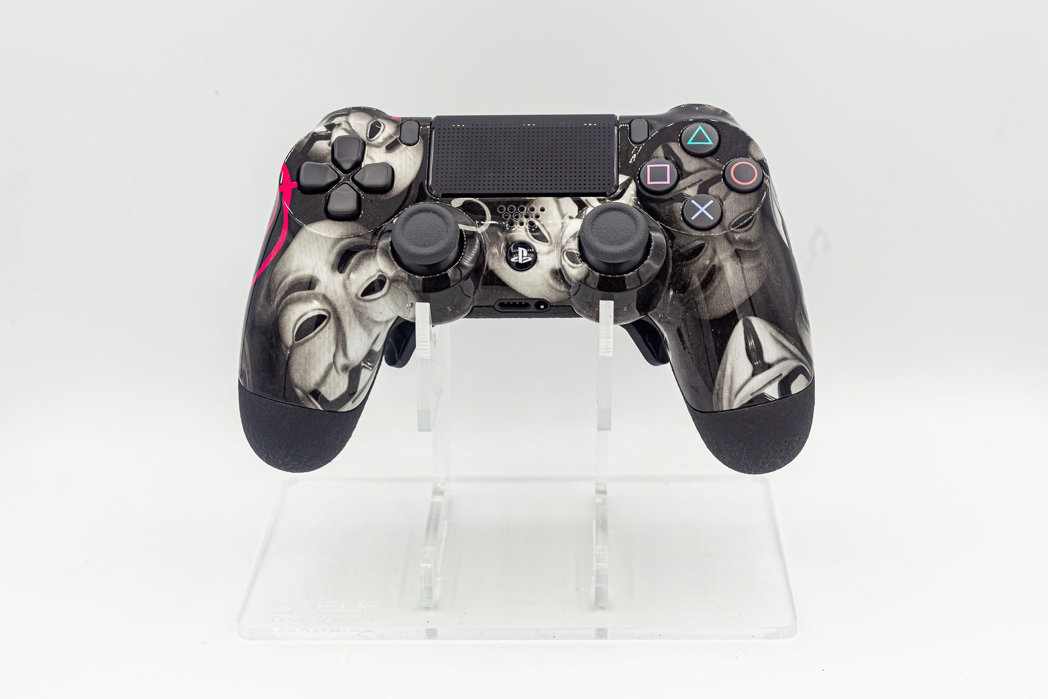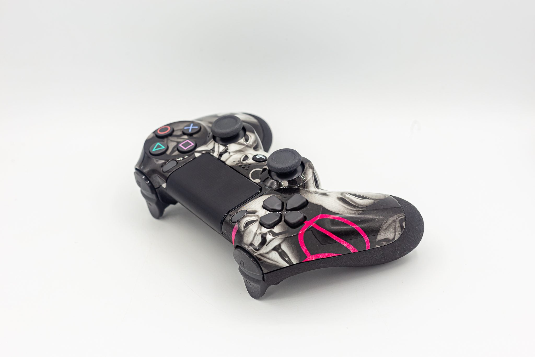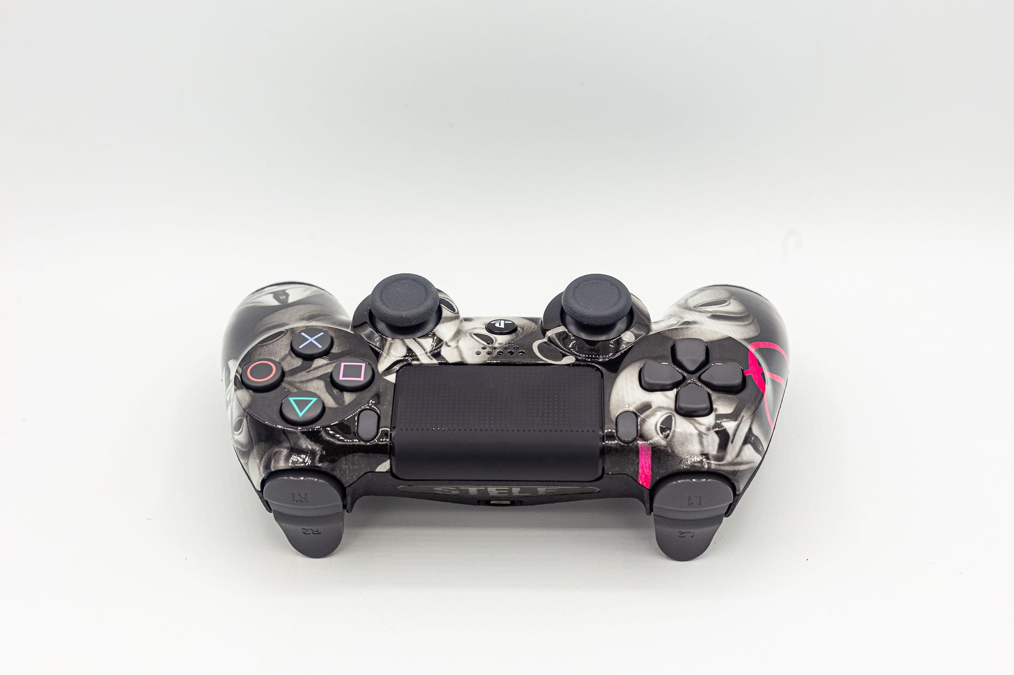 É importante ressaltar que todos os controles do PlayStation 4, incluindo aqueles que passam pelo processo de customização com pintura personalizada pela Stelf, são controles originais da Sony. A Stelf trabalha exclusivamente com controles genuínos e mantém a integridade das peças originais durante o processo de customização.   CONTROLE PRECISO: O toque, formato e a sensibilidade dos controles analógicos e botões com gatilho do DualShock 4 oferecem aos jogadores conforto e controle absolutos em todos os jogos para PlayStation 4. Os analógicos proporcionam movimentos suaves e precisos, permitindo uma jogabilidade mais imersiva e responsiva. Os botões com gatilho sensíveis à pressão oferecem uma experiência tátil diferenciada, permitindo um controle mais refinado em ações como atirar um arco e flecha ou acelerar um veículo.   COMPARTILHAMENTO EM SUAS MÃOS: O botão SHARE facilita o compartilhamento dos seus melhores momentos nos jogos. Com um simples toque do botão, é possível fazer upload de vídeos de gameplay e capturas de tela diretamente do seu sistema PlayStation 4. Além disso, você pode transmitir seu gameplay ao vivo para plataformas de streaming, compartilhando suas aventuras em tempo real com amigos e seguidores, tudo isso sem afetar o andamento do jogo.   RECURSOS INOVADORES: O controle do PlayStation 4 possui recursos revolucionários que elevam a experiência de jogo. O touchpad localizado no centro oferece uma superfície sensível ao toque, proporcionando novas formas de interação nos jogos. A barra de luz na parte frontal do controle fornece informações visuais adicionais durante o jogo, como indicadores de saúde do personagem ou mudanças de cor relacionadas aos eventos do jogo. Além disso, o controle possui um alto-falante integrado, que reproduz efeitos sonoros e áudio do jogo, aumentando a imersão sonora. Para aqueles que preferem jogar com mais privacidade, o controle também possui um conector de áudio de 3,5 mm, permitindo que você conecte seus fones de ouvido e desfrute de áudio pessoal durante o jogo.   RECARGA EFICIENTE: É fácil recarregar o controle sem fio DualShock 4. Basta conectá-lo ao seu console PlayStation 4, mesmo em modo de espera, através de um cabo micro USB.   CUSTOMIZAÇÃO: A customização com pintura personalizada pela Stelf permite que você tenha um toque único e estiloso ao seu controle do PlayStation 4. Com uma equipe de artistas talentosos, a Stelf oferece uma ampla gama de opções de design e estilos, desde padrões abstratos e gradientes de cores vibrantes até temas específicos de jogos, personagens ou logotipos personalizados.   A customização feita pela Stelf não compromete a funcionalidade original do controle. Todas as características do controle do PlayStation 4, como conectividade Bluetooth, resposta dos botões e sensibilidade dos analógicos, são preservadas durante o processo de customização.